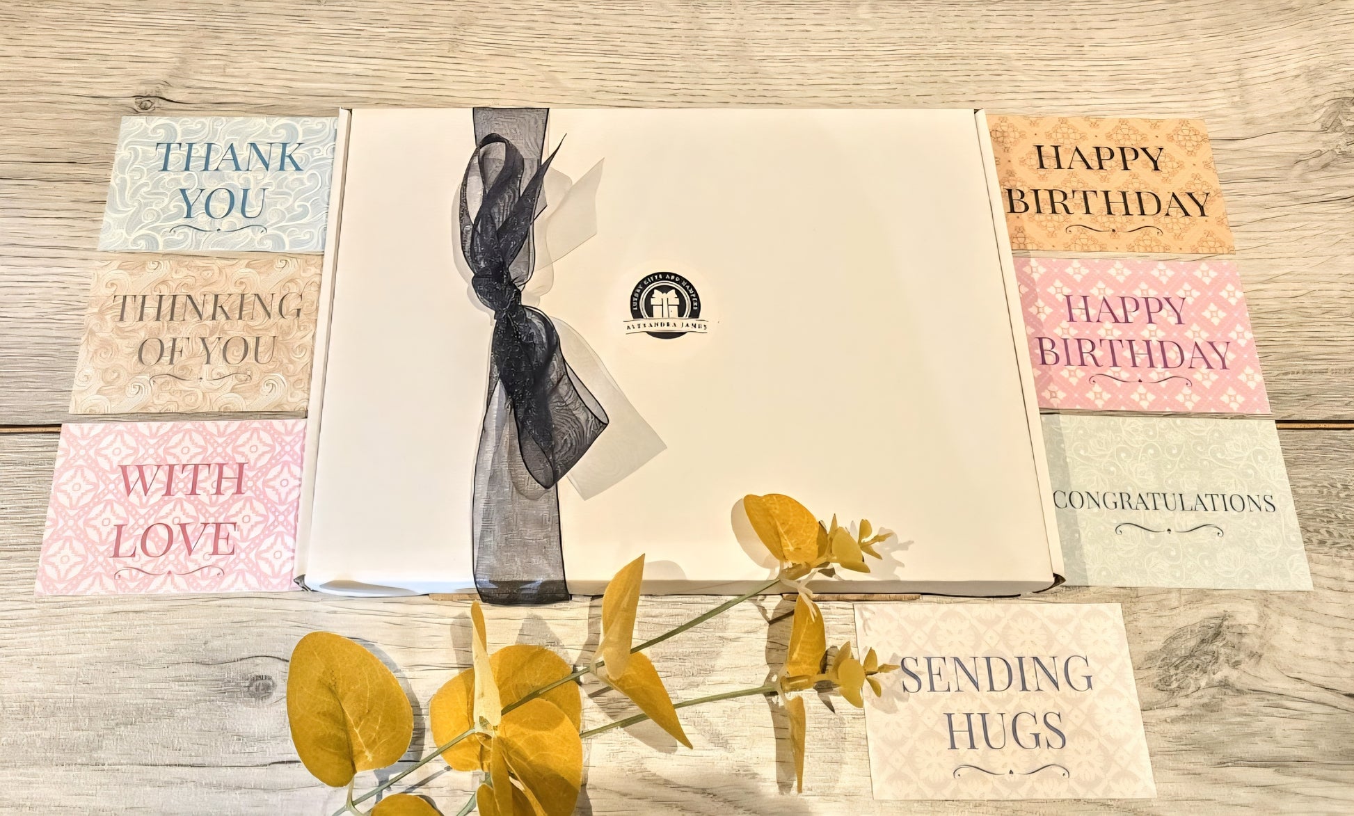 This hamper is wrapped in luxury tissue paper and packaged in an eco-friendly white kraft box with our branded sticker attached.